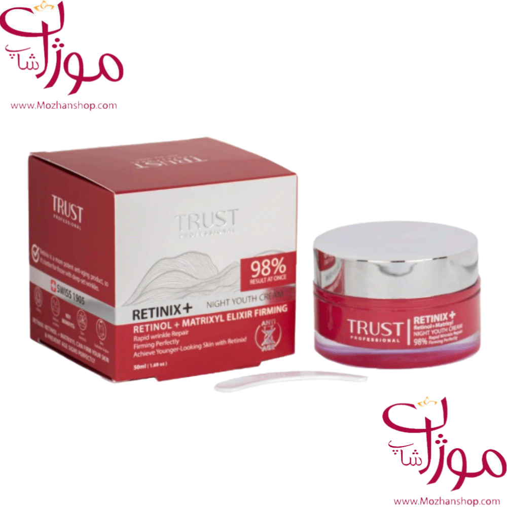از آنجاییکه با افزایش سن و گذشت زمان، به صورت طبیعی، میزان تولید پروتئینهای استحکامبخش پوست کاهش یافته و پوست دچار چینوچروک میگردد، پوست به مراقبت و آبرسانی بیشتری نیاز دارد؛ بنابراین استفاده از محصولات تخصصی ضدچروک برای همه افراد ضرورت دارد. کرم جوانساز رتینول تراست، به واسطه بهرهمندی از ماده مؤثره رتینول و با افزایش تکثیر سلولهای پوستی و افزایش تولید کلاژن در آنها، به بازسازی سلولهای مرده پوستی و افزایش استحکام پوست کمک میکند و با داشتن خواص آنتیاکسیدانی و مهار رادیکالهای آزاد، جلوی ایجاد چینوچروک در پوست را میگیرد. همچنین با داشتن ترکیب فعال ماتریکسیل مورفومیکس، به طرز مؤثری چینوچروکهای صورت، به ویژه خطوط عمودی آن و چروکهای پنجه کلاغی را از بین برده و به تقویت ساختار پوست صورت کمک میکند.